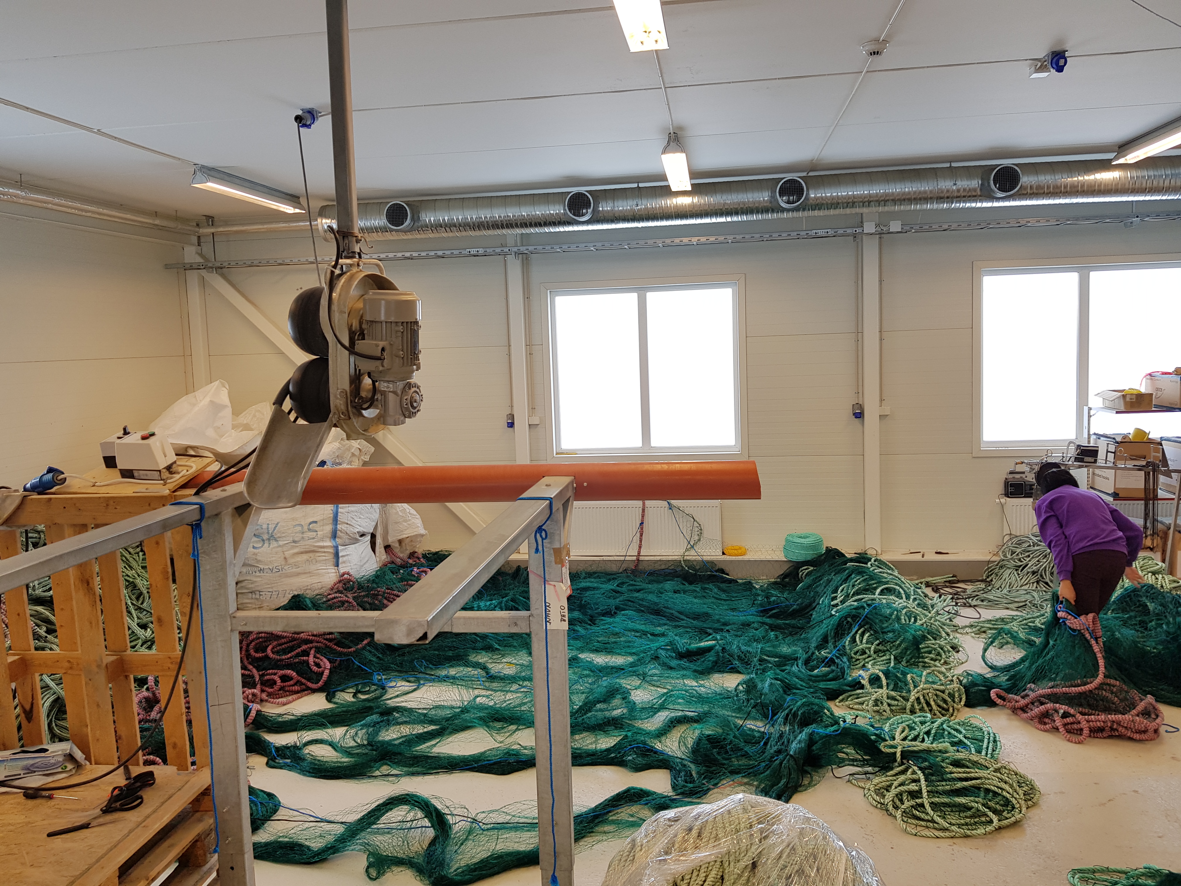 I bygget finner du fire symaskiner med dyktige montører, som syr fra 15 til 25 garn om dagen.